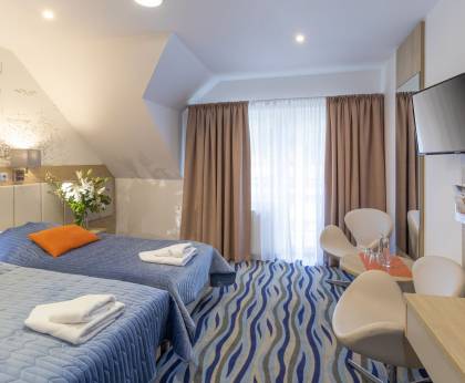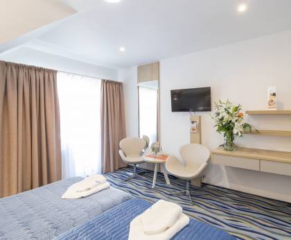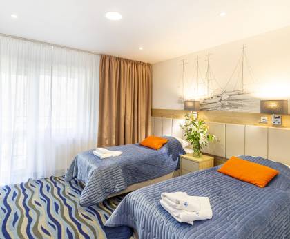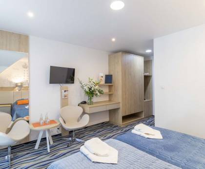 Das Ferienhaus Bagiñscy SPA besitzt ein breites Unterkunftsangebot. Wir können gleichzeitig 175 Personen in Zwei- und Dreibettzimmern unterbringen. Unser Hotel verfügt über 60 geräumige Zimmer, die sich auf drei Stockwerken verteilen. Alle Zimmer sind Nichtraucherzimmer.